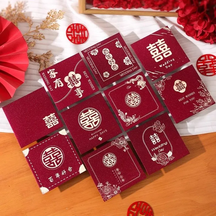 酒红色结婚喜字红包对折10-50块钱回礼红包堵门红包#备婚倒计时 #囍 #结婚 #堵门新花样 #回礼红包