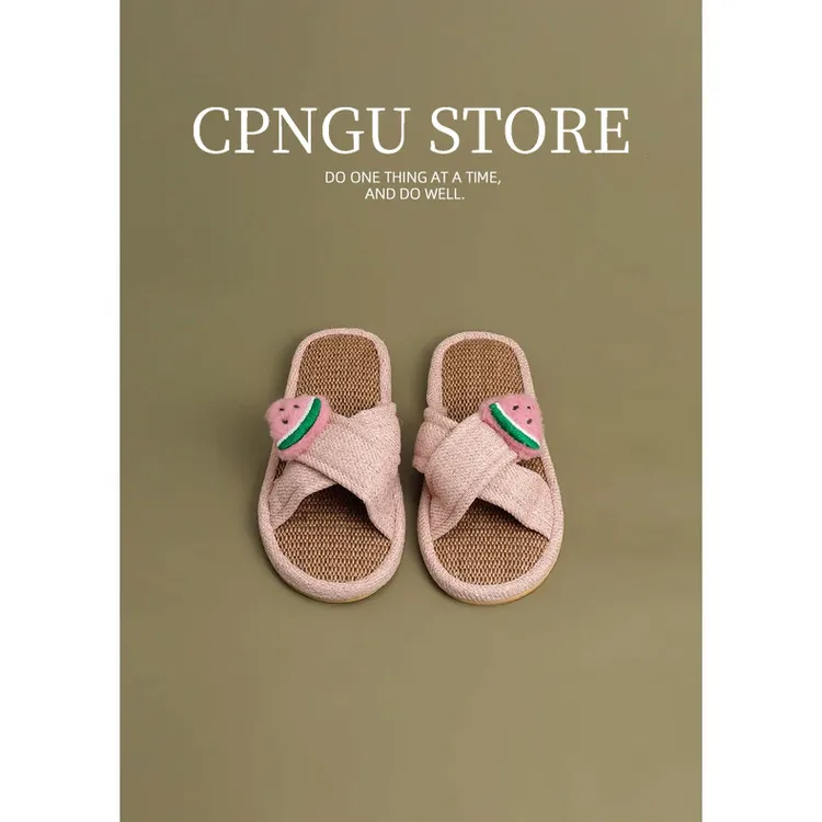 CPNGU 法式复古田园交叉拖鞋女居家外穿透气软底亚麻露趾防滑凉拖